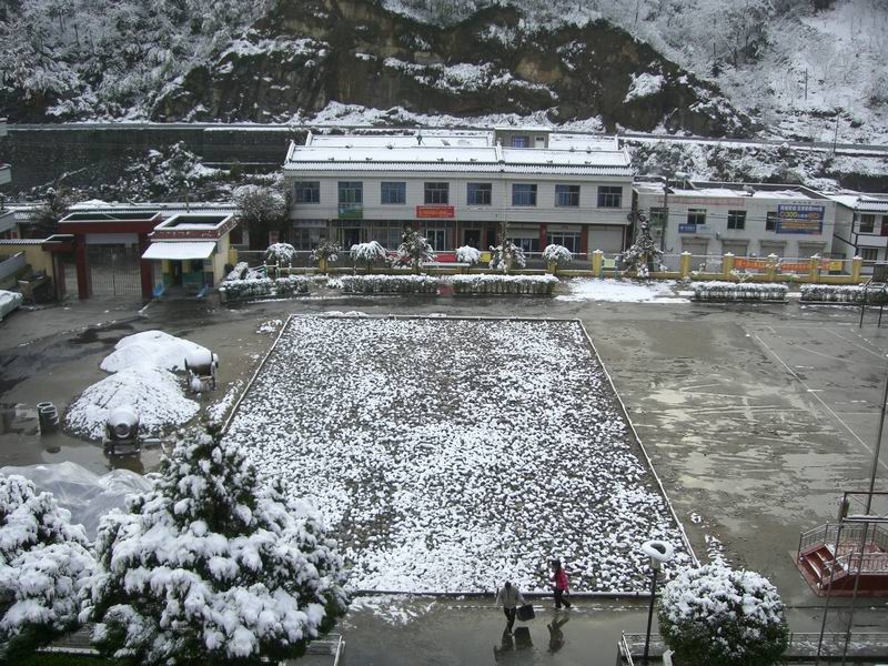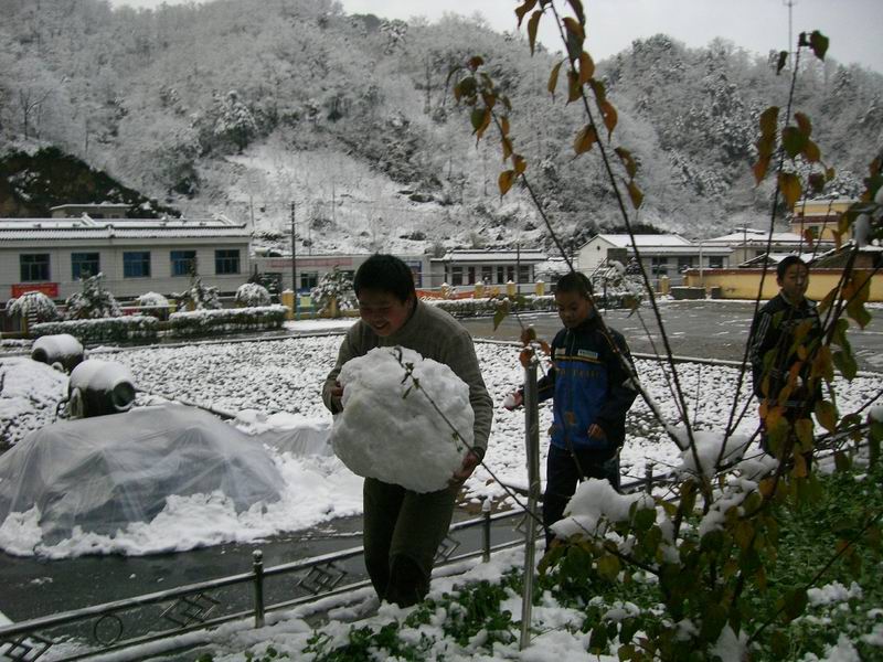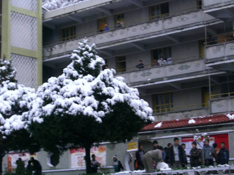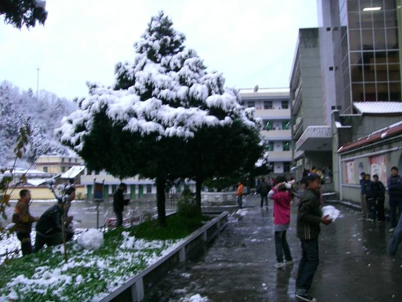 有少许的学生在教学楼,宿舍,厕所,这"三点一线"中穿过,个个缩着脖子,显得特别冷。操场上也比平时少了许多打篮球,打乒乓和玩游戏的学生,少了打打闹闹,少了欢声笑语,学校是一沉寂。或许有些同学会站在楼道,他们欣赏这美丽的雪景吧,是在呼吸这冬日里独有的气息吧。
