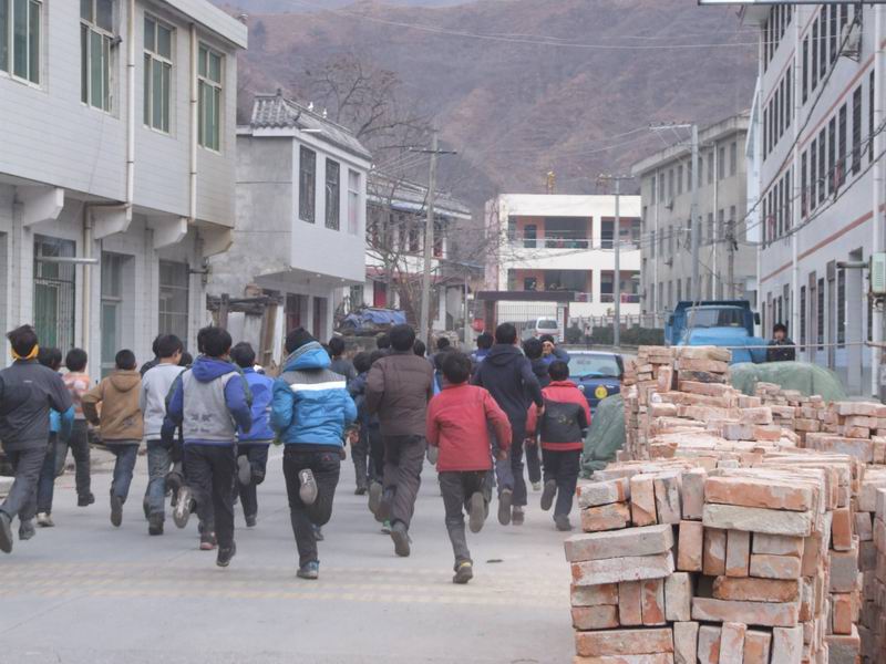 听,哨声响了,我们争先恐后的在马路上奔跑了。我们就像被追赶的羊群,奔跑在广袤无垠的草原上。