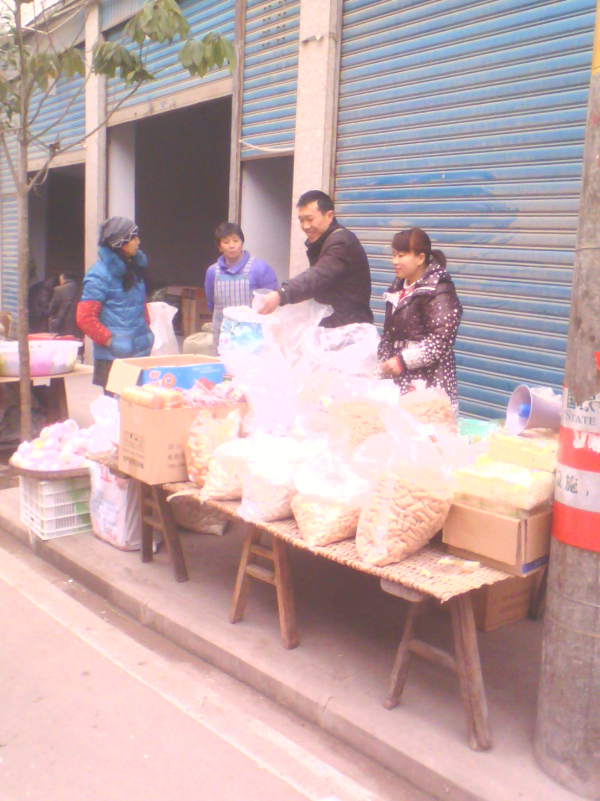 现在已经是冬天了, 冬天是一年中最冷也是最热闹的季节。别看他们大门不出,但临近新年的时候,可积极了,一想到全家人都可以在一起。干起活来可有劲了。道路的两边都是奇奇怪怪好玩的东西。从前很少见到的,比如棉花糖、炸鱼等好多好吃的地方小吃。也有各式各样的衣服,每个小摊上都挤满了人,背上还背着一大袋呢,都是在大街上赶备年货了。