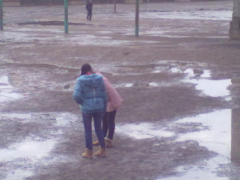 一进校园,眼前一片开阔,大操场的面积几乎有学校的一半。黑色的泥土露出自然的容貌,偶尔会长出几株小草。