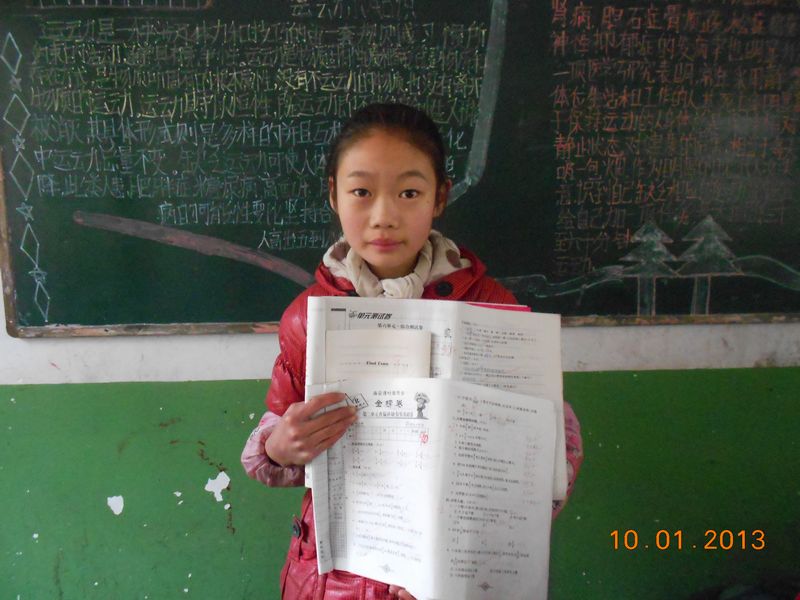 她叫武蓉,今年11岁,她喜欢打羽毛球、踢毽子、打篮球还有和同学聊天。时常着一身红色棉袄,黑色的裤子,赭红色的布鞋。我们之所以称武蓉为"语数英三门全能小天才",是因为她语文、数学、英语三门课每次考试都能考到90分以上,偶尔有时候会考80几分,但绝对没下过88分,即使考了80几分,但她仍然是我们班的第一名,谁也考不过她。