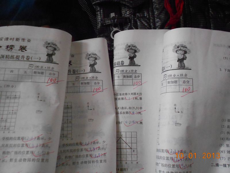 "铃铃——"上课铃响了,老师满面春风的走进教室把卷子放在讲台上,卷子就在离第一排同学一米远处。我们的心理"砰砰"的跳,老师说你们这次考的可好了,我以为老师说的是反话。老师把卷子一个一个的发下去,只听:100分、98分、97分、、、、、、我们都松了一口气,一下子来了精神。