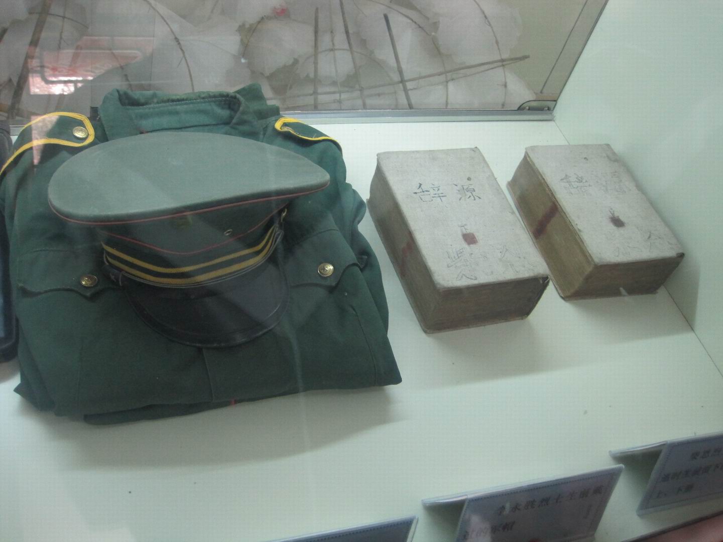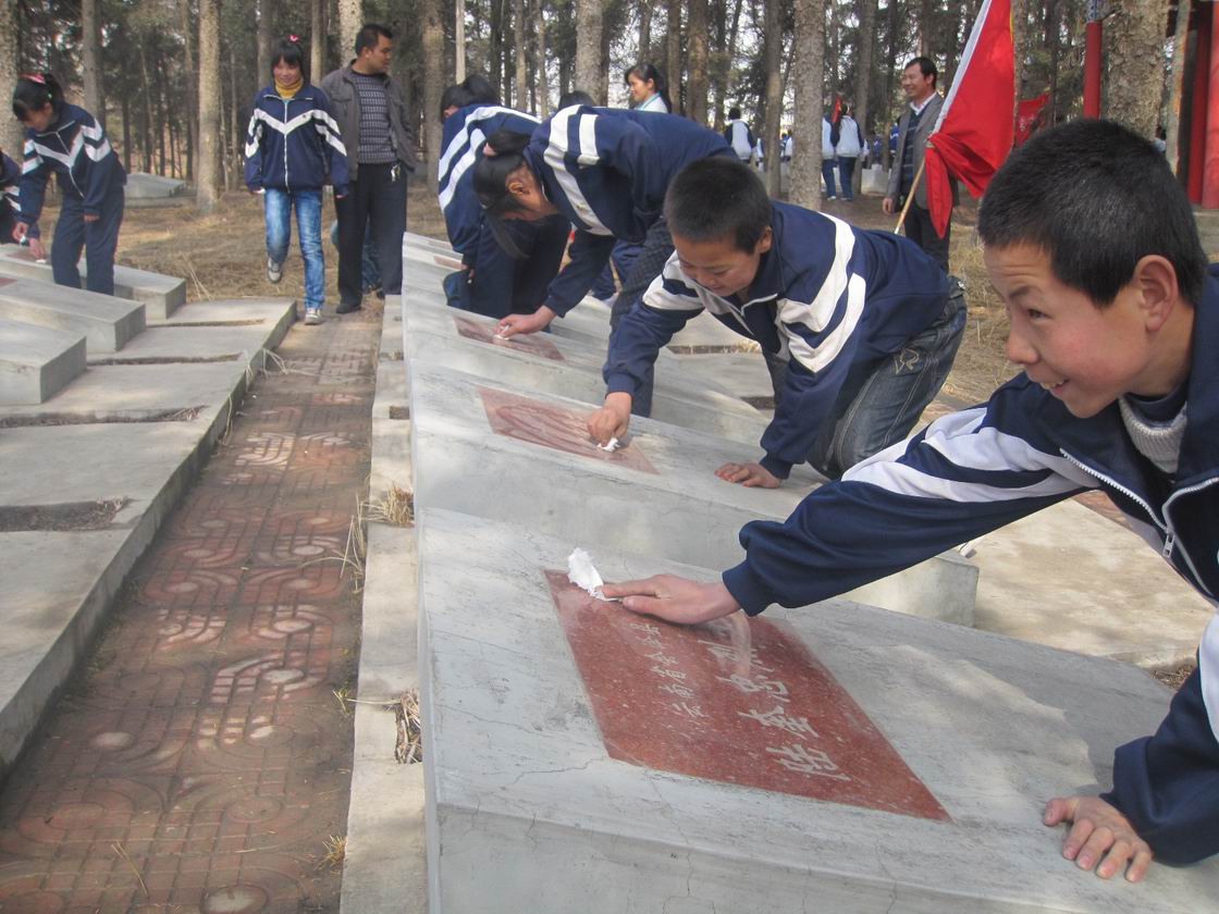 擦拭完墓碑我们参观了革命烈士纪念馆,在纪念馆里我们看到了这些烈士生前使用过的东西,有些是穿过的衣服,有些是生活用品,给我印象最深的是有一位烈士生前用过的两本《辞源》,已经翻得有些破旧了,我想他一定是想当一位文学家,可为了新中国的安危,他放弃了自己的理想,毅然投入到战斗中来,真是令人可敬。
