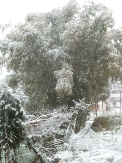 天渐渐放晴了,雪停留的日子不多了,我赶紧拿出相机拍下雪与大自然和睦相处的时光。雪你虽然渺小,但你并不卑薇,你无私地展现出你高贵的品质,"千峰笋石千株玉,万树松罗万朵云"把大地装点得如此美丽。