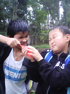 弟弟和小东玩得很开心,两人抢着手中买来的气球,气球里面是装满了水的。在路上,你追我,我追你,精力可充沛了!