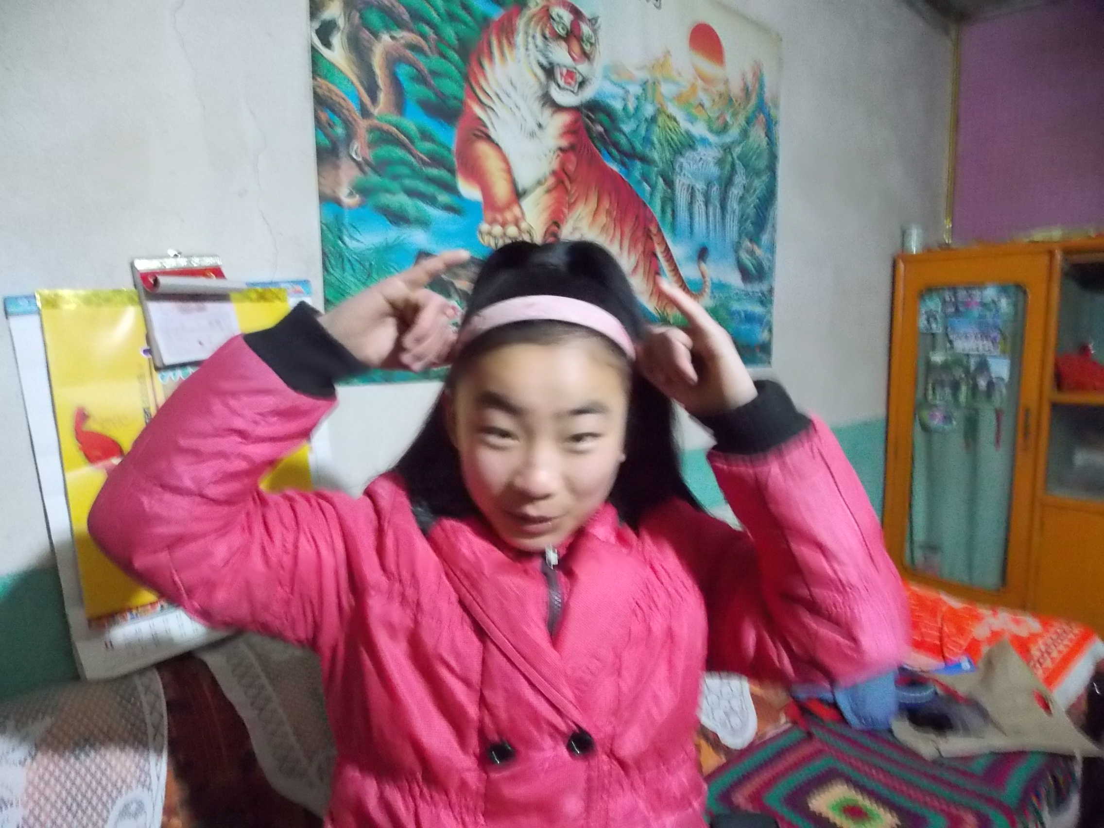 因为从小到大我们都在一起玩耍,所以我们两个人关系很融洽。玩着玩着,我就对表妹扮鬼脸。