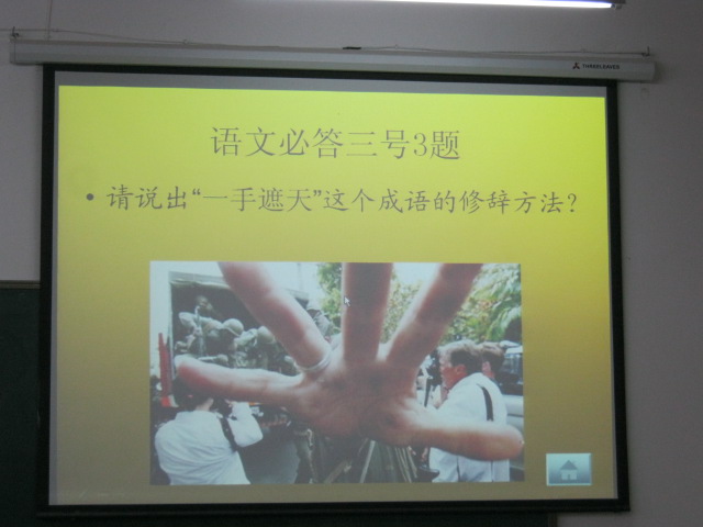 这次的题目出的都非常的有新意,比如这道语文题目"请说出"一手遮天"这个成语的修辞手法。其实这个答案很简单,几乎所有的同学都知道,但是这样的提问方式都激起了大家的兴趣。