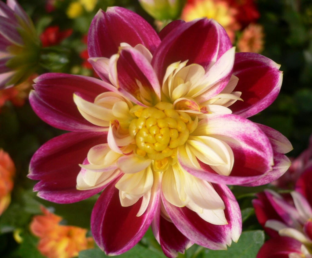 在芍药的前面,种着几棵大理花。那粉红色的共瓣中镶嵌折星星点点的金色的花蕊,给它增添了几分色彩。在这些花中,有一朵我最喜欢,它第一层花瓣是红色的,第二层是粉色的。这多别具一格的花,是大丽菊中的佼佼者,在茂密的绿一二的衬托下,显得格外美丽。