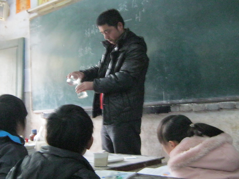 铃声过后,同学们陆续地走进教室,耐心地等待化学老师的到来。终于,一位拿着课本,手中不知道提了“一筐”什么东西的主角登场了。