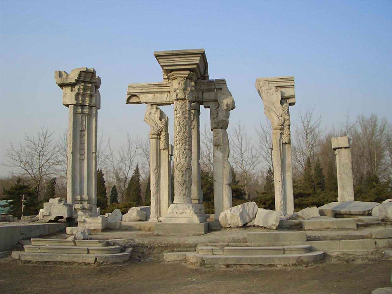 圆明园位于海淀区中关村大街以北,清华大学以西,与颐和园紧相毗邻。始建于康熙四十六年(1707)由圆明园、长春园、绮春园、三园是当时世界上规模最宏伟,建筑是最富丽多姿多彩的大型皇宫园林,曾被益为"切造园林艺术的典范"和"万园之园"同时也激起了外侵略者的狼子心、英法联军和八国联军曾在1860年和1900年两次入侵北京,在烧杀掳掠后将建筑物遭到彻底毁灭。如今,奇迹和神话般的圆明园变成一片废墟,只剩断垣残壁……