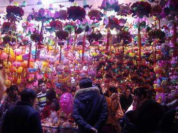 正月十五夜的 游人们摩肩接踵,观看着、欣赏着、指点着、谈笑着。在灯的海洋中穿行,今年的福灯制作特别大,圆圆的好似天上的大月亮落在了地面上,这福光也不同往年,可以照到很多地方。