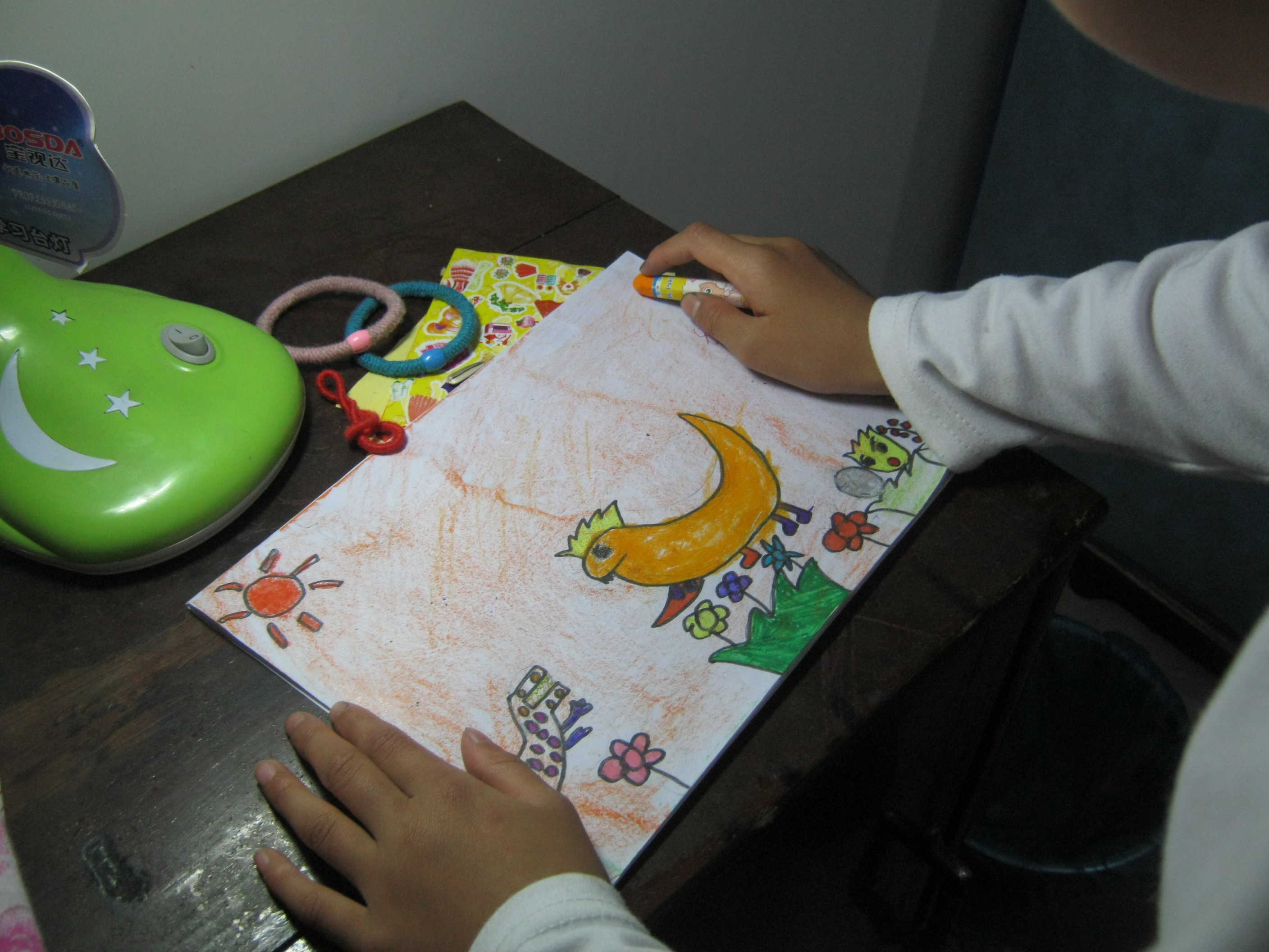 我妹妹的乐趣是画画,虽然她画的不是很好,但是她画画时很开心,很快乐。有时,她画蛇添足,把画好的画又涂得花花绿绿,不知道要表达什么意思,但是看着她一脸的自信,我也不好说些什么。