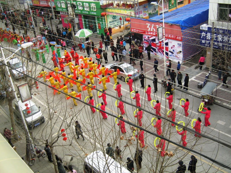 瞧!各位婆婆、奶奶和阿姨也都不闲着,也都组织了秧歌队,欢迎新一年的到来!看她们有的手上拿着黄色的圆圈,好像预示着过去一年的圆圆满满;站在前面的阿姨们腰上系着红腰带,双手用力地挥舞着,好像一团火红的火焰在空中飞舞着,象征着我们新一年的日子将会红红火火!街道两旁更是被人们围的水泄不通,大家都在用心的欣赏着表演,这使表演的阿姨们更加卖力了,她们的动作是那样的整齐、潇洒,她们的舞姿是那样的轻巧优美,使人感受到浓浓的年味!