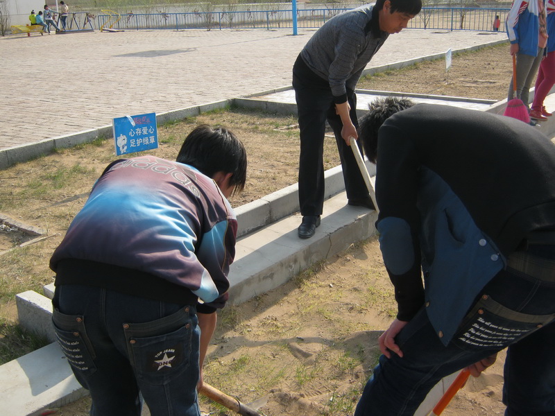 男同学也不甘示弱,在副校长的影响下,忙的不亦乐乎,他们弯着腰,认真地铲着杂草,小心地爱护着脚下刚刚长出的嫩草,这样的劳动不仅培养同学们爱劳动的习惯,还让同学们明白要爱护我们生活周围的一草一木,爱护我们赖以生存的环境。