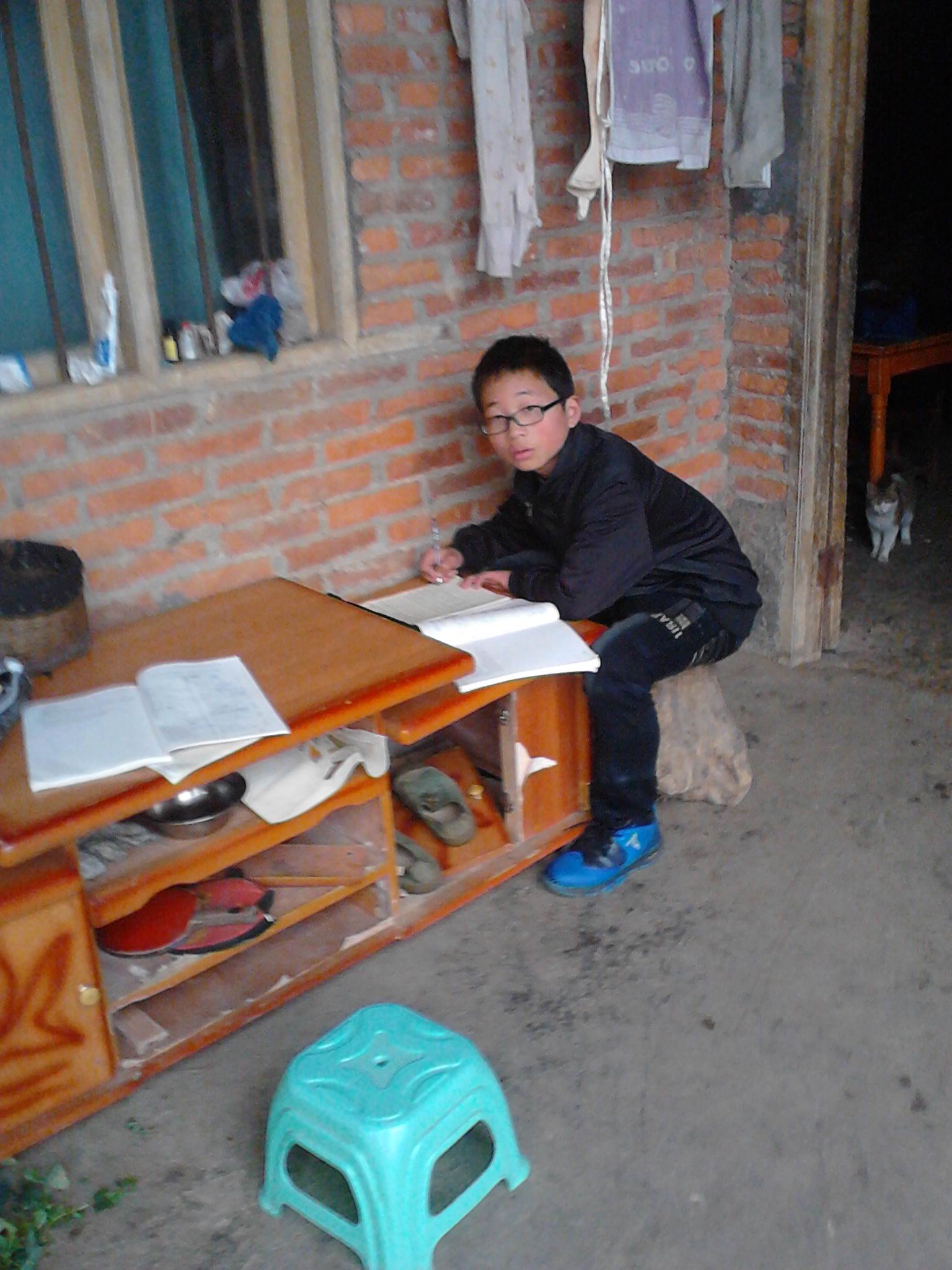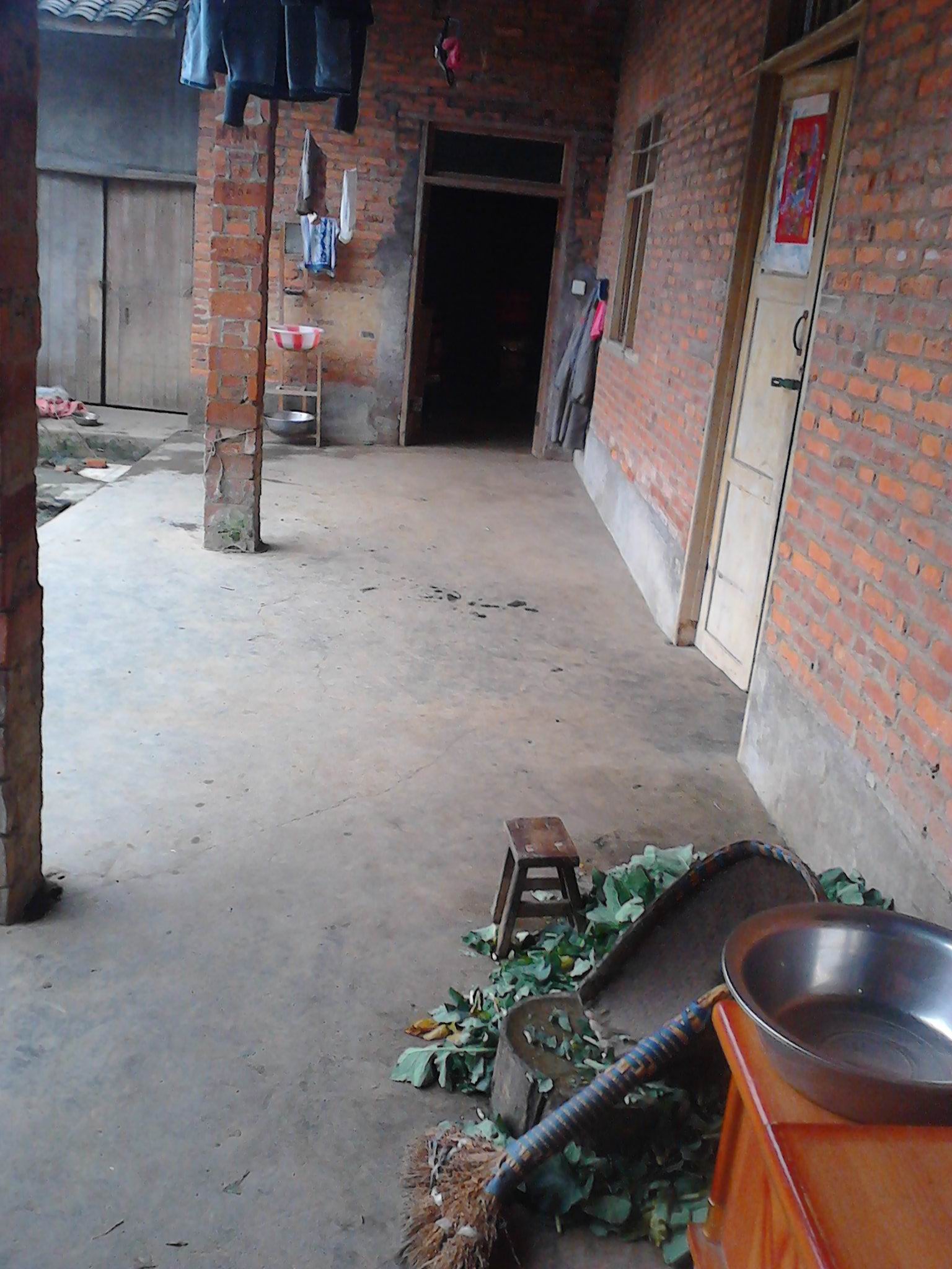 我家房屋是很多年前爷爷奶奶建成的,是一栋红砖青瓦的平房。屋子前有一个十多平米的坝子,坝子里挨着屋檐的地方有一口井,那是我们的水井。我家有五间屋子,三间是卧室,一间厨房,还有一间比较大的是我们养猪的屋子,我们这里叫"猪圈房"。家里的家具都是很多年前的旧家具了,而且只有有限的几样。