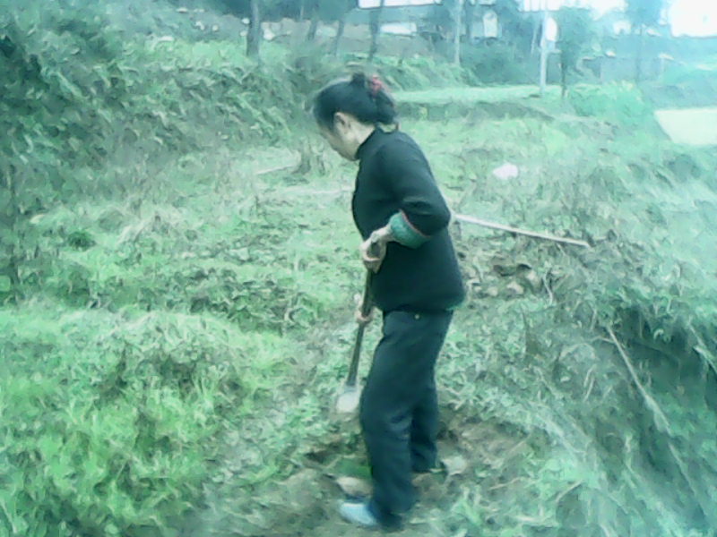 弯弯的田埂,像一条长长的带子,这条田埂是领居家的,几年前他家搬到了城里,而这块田闲置了下来,母亲今年决定索来种玉米。干枯的野草,像疯长的头发,厚厚的盖在土地上。今天,我们全家动员来锄草,此时的田野间还没有许多奇形怪状的虫子,但是生命却已经悄悄进行了,当斩去枯草后,土地表面有新芽萌发,挖一锄,翻开土地,新春,那香味就四处弥漫开来。