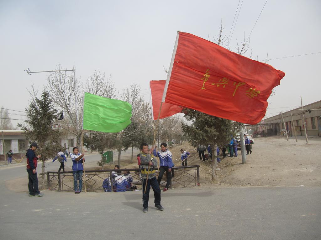 垃圾清理到了下午,忽然刮起了沙尘暴,尘土飞扬,天空中一片昏暗。所幸的是我们的清理工作已经进入了尾声,同学们都鼓足干劲,不一会儿,便完成了老师分配给我们的清理任务。同学们都满面尘色,在狂风中回到了学校。