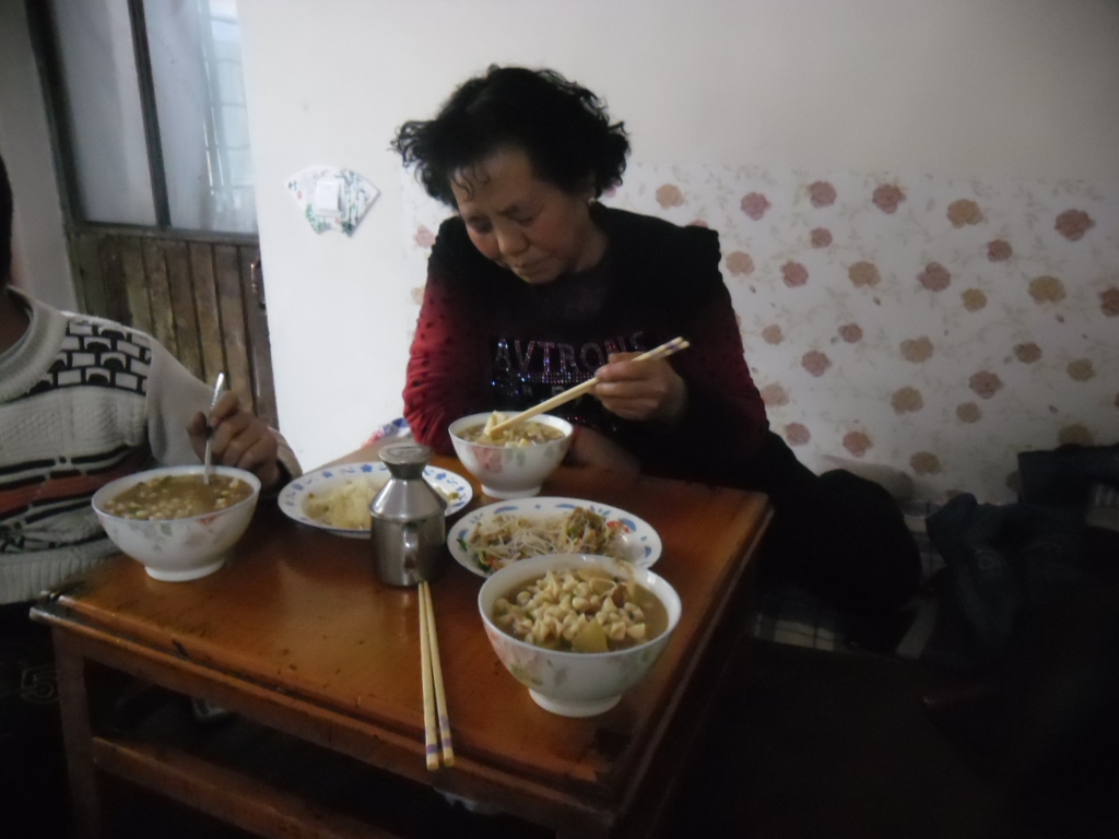 最后就是煮面了,在锅内倒入清水,等水开后放入面,等面煮好后,就可以放入炒好的酱了,再根据自己的口味加些调料就可以了。就这样,我的窝窝面做好了。一家人围在饭桌上吃着我做的窝窝面,很开心。