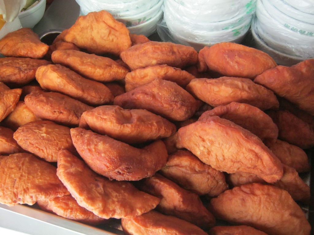 炸是所有程序中最难的,炸时需要掌握火候,火候要中等才好,如果火候太小了,油饼一直煮在锅里面,油钻进面里面因为油太多而太腻,吃不成。但是火候太大也不行,火候太大油会溢出来,很容易烫伤人。刚炸出来的油饼是蛋黄色的,表面还有一些小小的油泡,一口咬下去,脆脆的外皮,里面又软又甜的可好吃了。