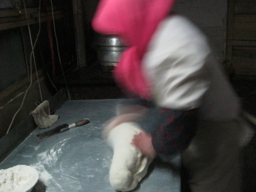头一天晚上需把面和好,和好后要放在炕上,用衣服盖好,要保证第二天早上可以做出美味可口的油饼麻花。第二天早上面起好了。为了让炸出的油饼麻花好吃,还要在起好的面里化一点糖。但是糖一粒一粒的很难完全溶进面里,所以还要用水把糖化了,再倒进面里面。