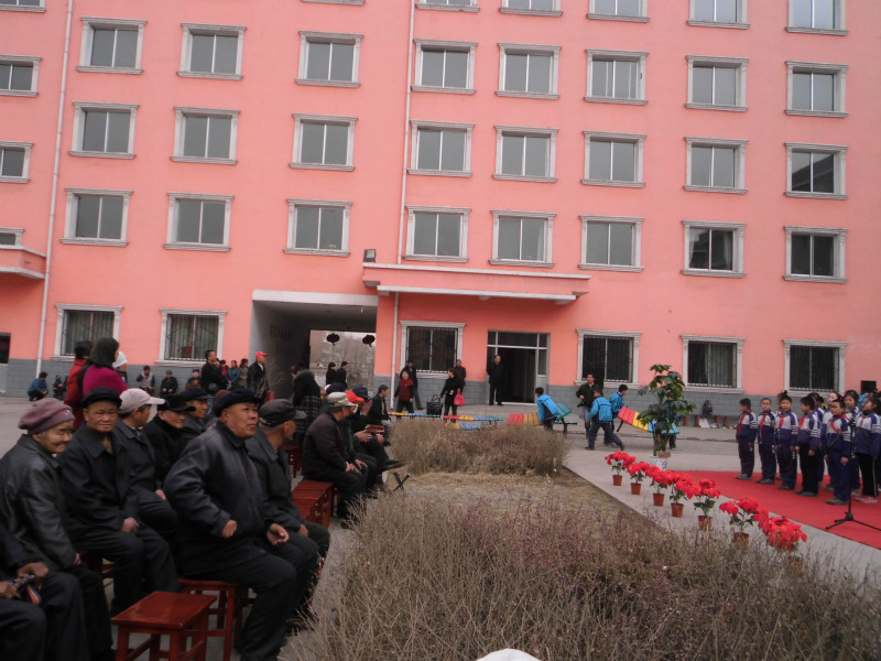 我们来到这里,也是为了关心老人。你看,有的同学在拿着书给奶奶念文章听。也许奶奶的耳朵已经听不清,可是我相信她还是会感受到我们的爱