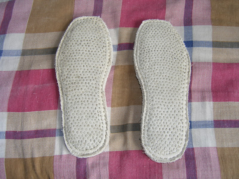 看这双鞋底,是奶奶亲手纳的。鞋底的正面和反面都用一针一线纳的,纳的非常绸密,使人感到无比的整齐,仔细看时,你会感到它就像一个队伍排列着。