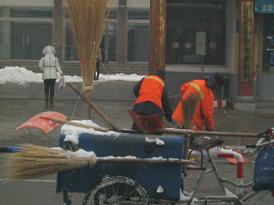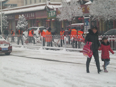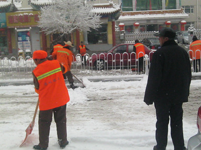 有许多清洁工叔叔和阿姨正拿着他们的宝贝铁锹,在街上铲雪。其中有个阿姨连手套都没戴,她的手冻得又红又僵,可还是在不停地铲雪,为了不让雪和地凝固在一起,他们吃力地铲着。是什么力量支持着他们?是一种精神,一种为大众默默无闻无私奉献的精神。清洁工无论严寒酷署,都坚持为人民服务。他们那种不求名、不求功、不求利,只求大众平安健康的精神,难道不值得我们学习吗?风雪打在他们的脸上,他们并没有退缩,只是尽力把雪铲干净,不让行人跌倒。我佩服清洁工,更佩服他们的那种精神,虽然天很冷,可是清洁工的心是炽热的,是火热的。