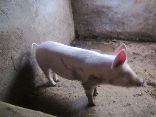 我们家有一头猪,这是去年的十月份抓来的,现在已经长高了很多,它是我们家食物中肉类的主要来源,我家人肉类的摄入就全靠它了。我们家乡的猪肉是纯天然的,家乡的人从不喂它们吃饲料之类的东西,所以吃起来大可放心。我家的猪总是很大,身上的肉也很多,正是因为这样,我家一年四季都有肉吃。