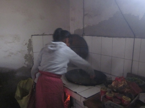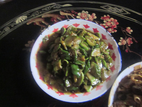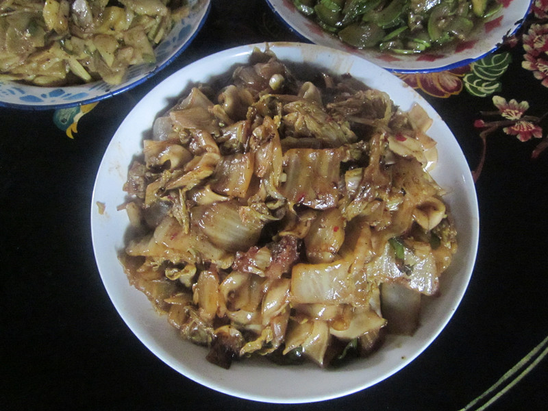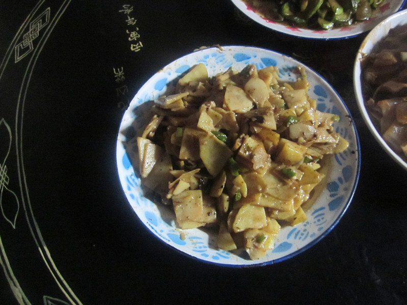 我先炒土豆片,,先往锅里倒些油,然后等油过了之后,再把土豆片放在里面,再放上些适当的调料就可以了,后边的两个菜也一样,炒出来一看,嗯,还不错!