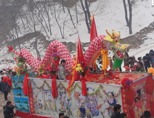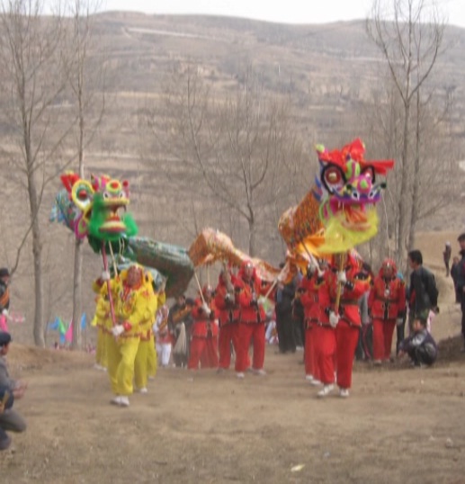 最后,到“四大件”上场了。两条龙互相盘绕,在空中飞忽起忽落,观众的心也忽上忽下。威武的狮子摇尾,昂首挺胸,让人们都为它的霸气凌然而甘下风。华丽的船一摇一晃的向前行驶。小巧毛驴更是可爱又可笑。当然,在这精彩的表演背后,也少不了表演者的辛勤汗水。玩社火,是家乡的风俗,也是家乡人心灵的释放,一年四季,他们都在埋头苦干。每天与朝阳同出,与落日同归,只有在过年时,大家才能休息几天,而玩社火,便是最好的表现。