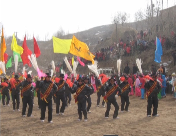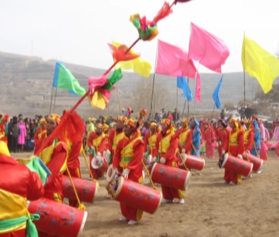 进场过后,紧接着就是打鼓。百十号人背着大鼓,哨声一响,鼓声就响起来了。伴随鼓声的还有演者矫健的伐,灵敏的舞姿。在气壮山河的氛围里,表演者于鼓声已融为一体,鼓在表演者手中,运用自如,仿佛是自己身体的一部分。各种变化姿势各种阵势,使人眼花潦乱,应接不暇。