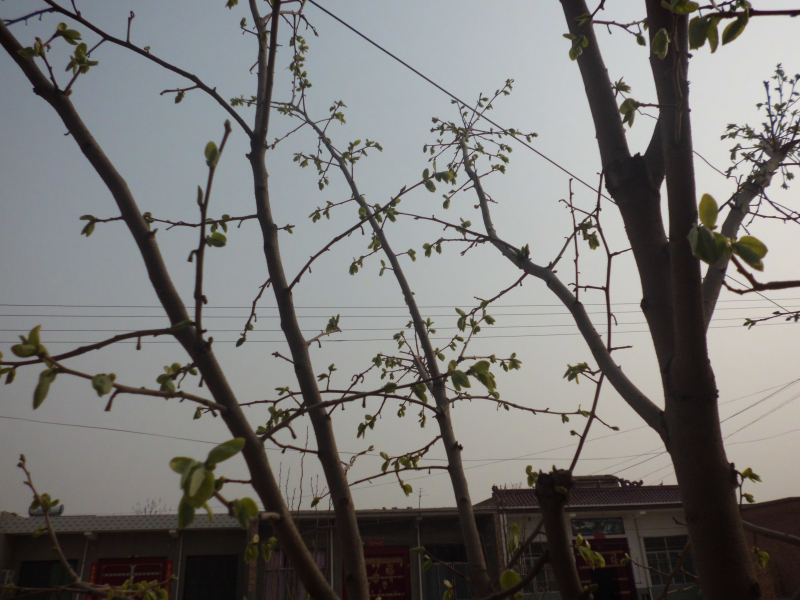 去年,我瞧邻家的柿子结得很多,今年春天,就忍不住偷拍一下,看看四周没有人,“咔嚓”相机快门按下,就赶快跑了,回家看看我的成果,芽真的很旺,今年秋天,一定要到她家要柿子吃!