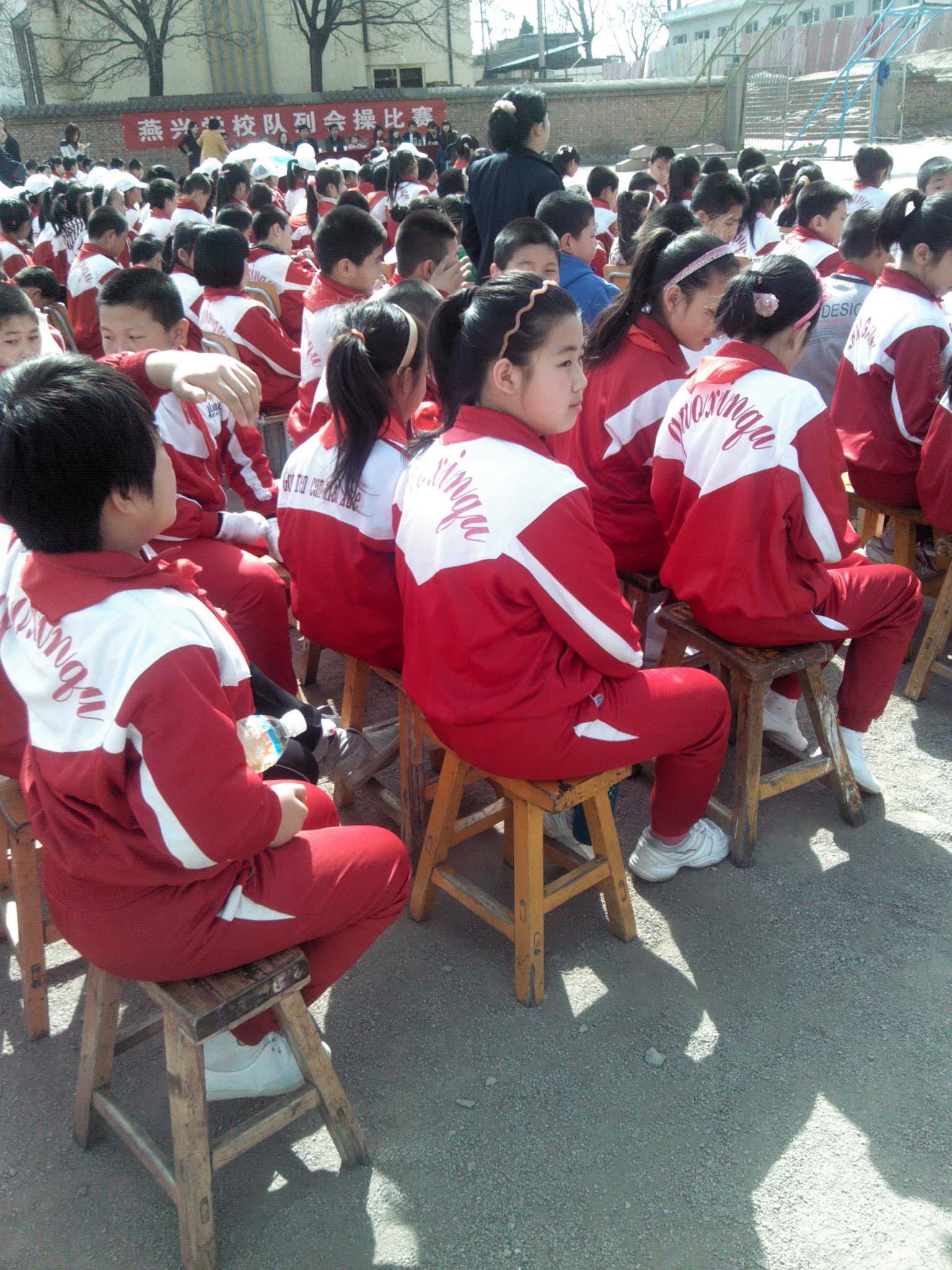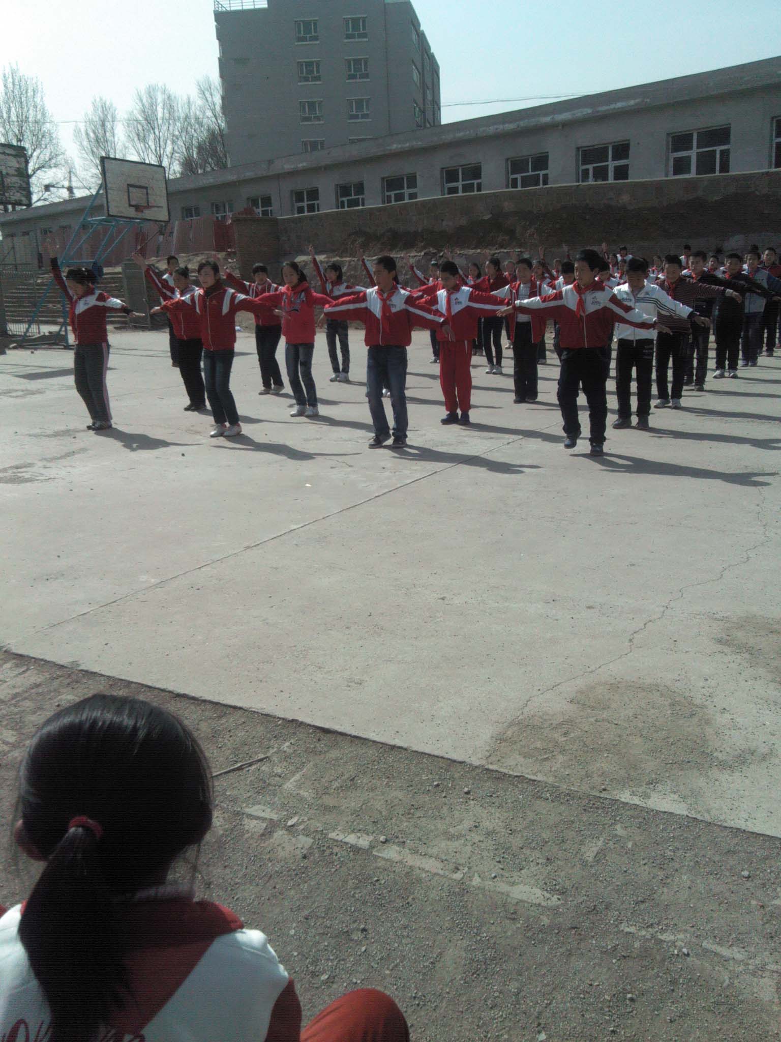 校长宣布比赛开始,我们就有些紧张了。因为比赛顺序是从六年级开始,也就是我们要第一个出场。我们快速地收拾好自己的校服,戴好红领巾。这时候一贯吵嚷的我们安静地连呼吸都能听清,我们随着班长的口令做着各种动作,每个人都竖着耳朵,生怕自己的失误给班级荣誉摸黑。可能是太紧张了,平时练得挺好的,今天还是有几个同学做反了动作。我们没有埋怨,因为我们知道,每个同学都在尽心尽力。