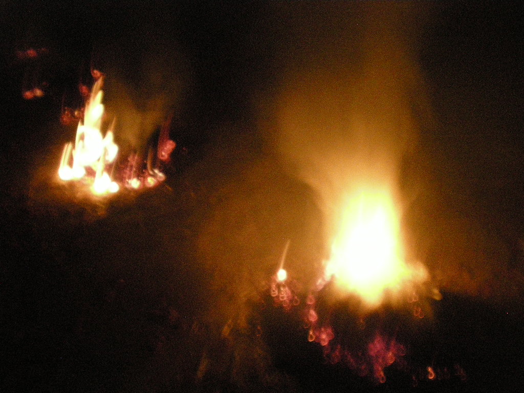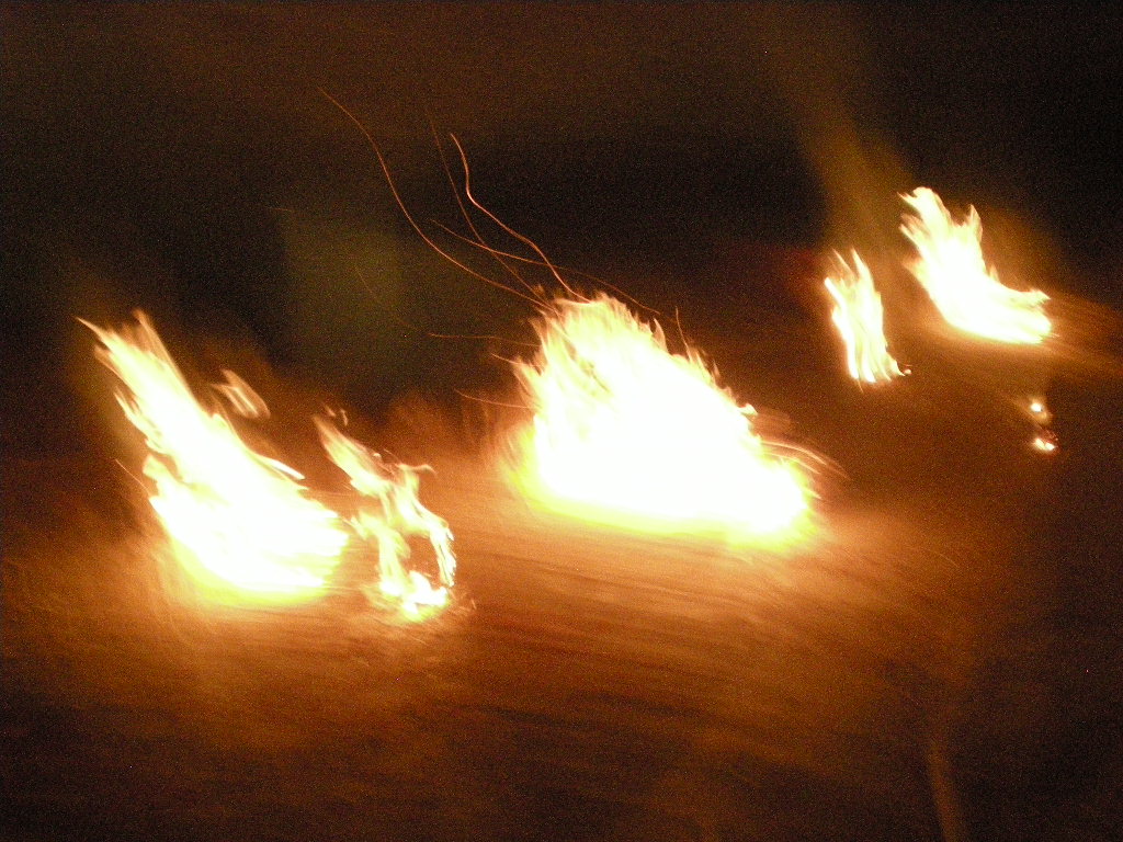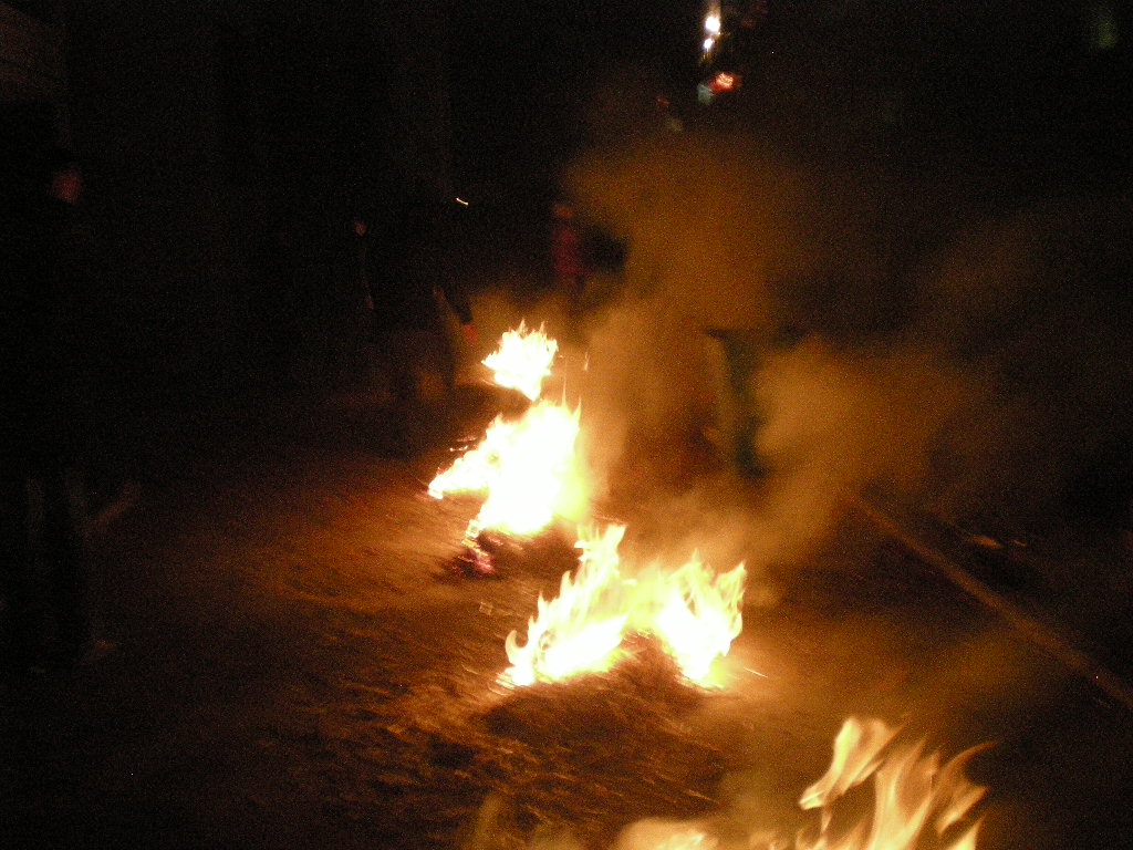 等不及的大人和孩子不顾呛人的烟和熊熊的火,一个个从火上跳过去,大家兴奋的喊着叫着,释放着内心的快乐。