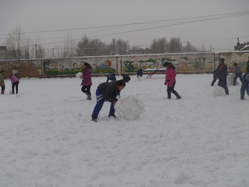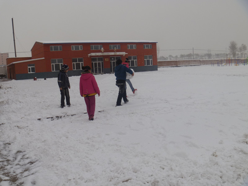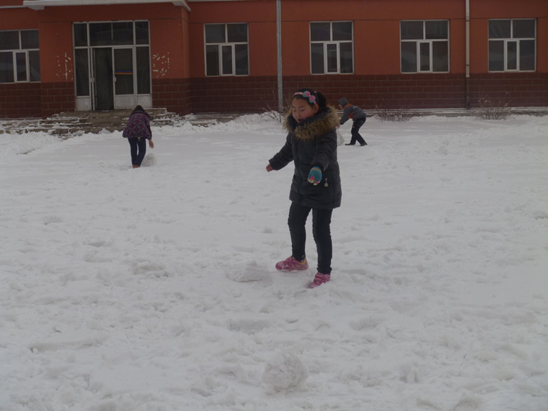 早自习下了,老师说:孩子们去玩雪吧!我玩着玩着脸碰破了,老师把我叫进班,说:"脸碰破了,小心着了风。我只好趴在窗户看他们玩。