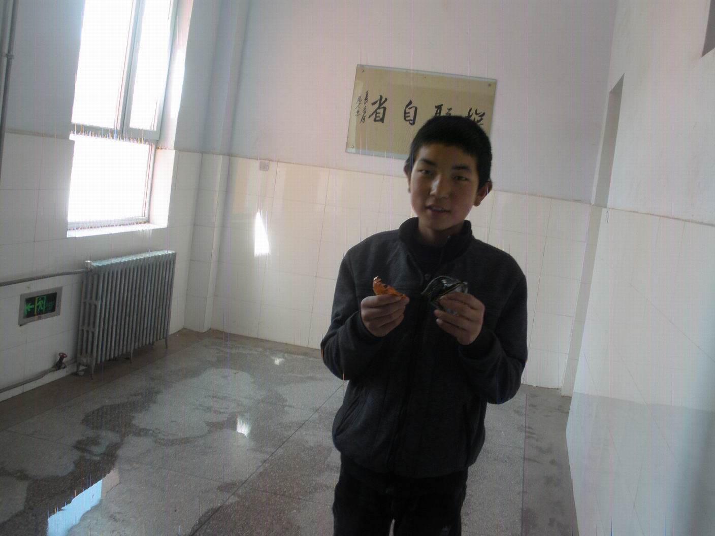 瞧!他手里拿着一张大饼,嘴里叼着一个鸡腿,油抹得满脸都是也不管,他是谁呢?这就是我的"馋猫"表弟——程晓宇。为什么说他是"馋猫"呢?听听下面的介绍你就明白了。