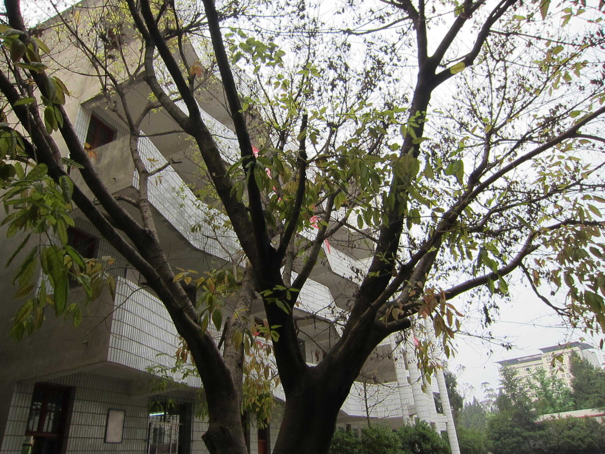 春天的开头并不华丽,小天神它随意一扔,不知扔到了哪里。我在校园的黄桷树上寻到了它,黄桷树长在学校要道的旁边,无论出操,上课,就餐,都要和它擦肩而过。它似乎没有感受到春天的到来,无数枝条上,还挂着数不清的黄叶。人们看到它的第一感觉就是震惊,它就像拔地而起的闪电劈向苍穹,而它那数不清枯叶更给它渲染了一种沧桑之感。走近一瞧,你会发现在它的死枯之中涌动着生机。枝条底部已萌发了片片新叶,新叶那种嫩绿得让人看了就忍不住想摸一摸,但一伸手,又会马上缩回来,生怕弄伤了。它们生长在片片枯黄之中,给人一种生生不息的感觉。这些绿叶将绿色不断地向上蔓延,将春意蔓延开去,漫进人的心灵。这种感觉才像是春的感觉。