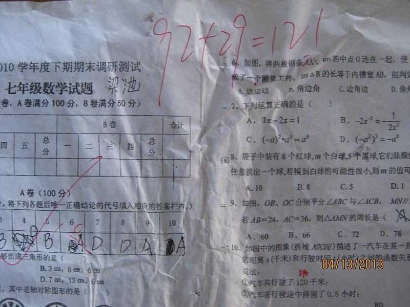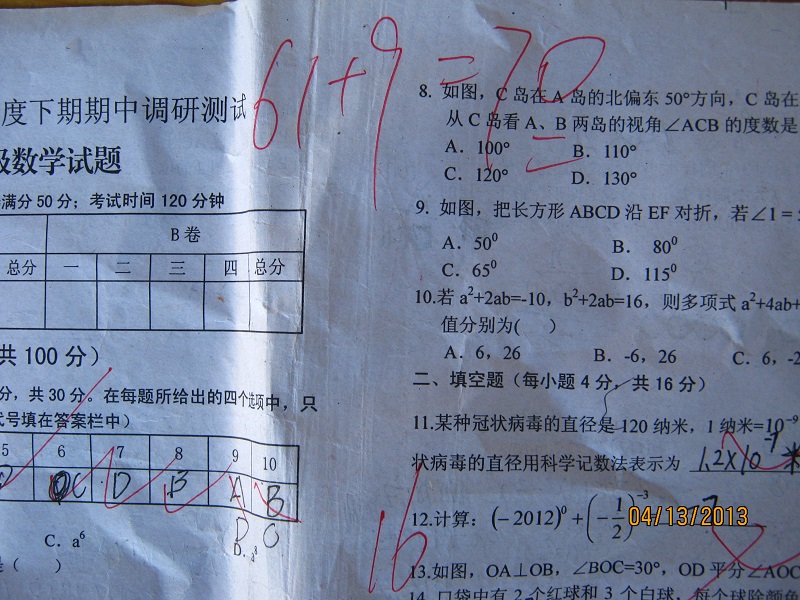 星期二来到学校,同学们都在讨论昨天考试的事,我很害怕同学们来问我的考得如何,只好不作声地坐在座位上。上课了,老师进来就开始念着分数发卷子。我担心的事终于来了,"梁池,61+9。"当我拿到卷子一下就害怕起来,"这可怎么给爸爸妈妈交待啊?"回到家,我把月考卷子给了爸爸妈妈看,令人想不到的是,爸爸妈妈没有骂我,而是叫我下次努力。