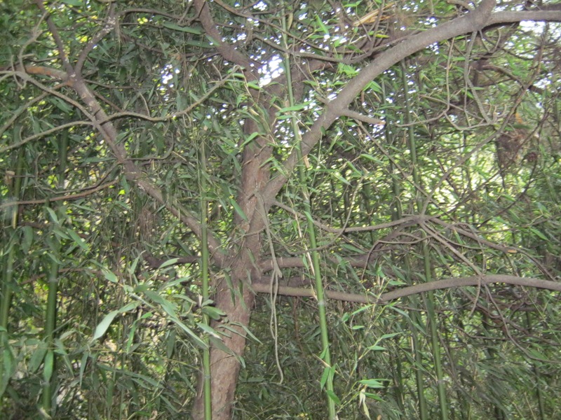 走着走着,我看到一棵挺拔的大树,那高大的褐色树干上缠绕着许多绿藤,绿藤高高的悬挂着 ,如碧绿的翡翠条从空中垂落下来,给人一种美的视觉享受,让我长期疲劳的眼睛也得到了放松!看着这美丽的景色,我不由得佩服起大自然来,这可都是它的杰作呀!