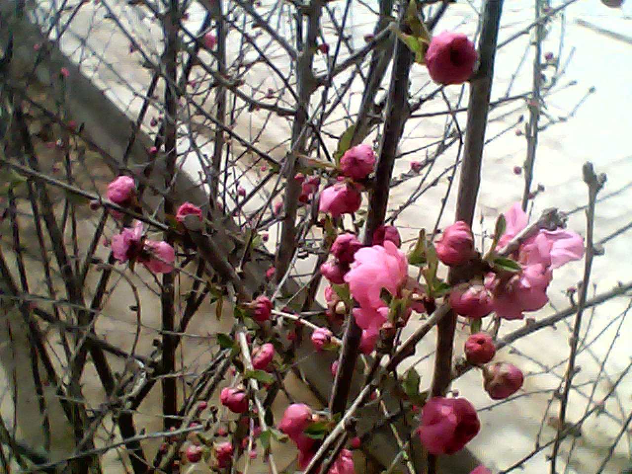 好一株梅花!枝头上既有含苞欲放的花蕾,也有绽放的花朵。我仿佛闻到了一阵沁人心脾的清香,心情不由得豁然开朗。瞧,那一朵已经开放,红红的;另一朵就要开放了,饱胀得快要裂开。梅花也是报春的使者,但它"俏也不争春"。