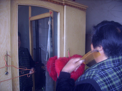 哥哥把照片洗出来后一看,还真挺逗。我把照片拿给大妈看了,大妈不好意思地笑着说:"谢谢!"