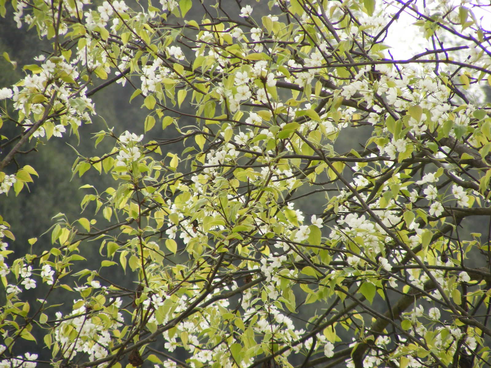 樱桃花簇拥在枝头,点缀着光秃的树枝,在风中起舞,像银白的霜花,像水洗的胭脂……美哉。