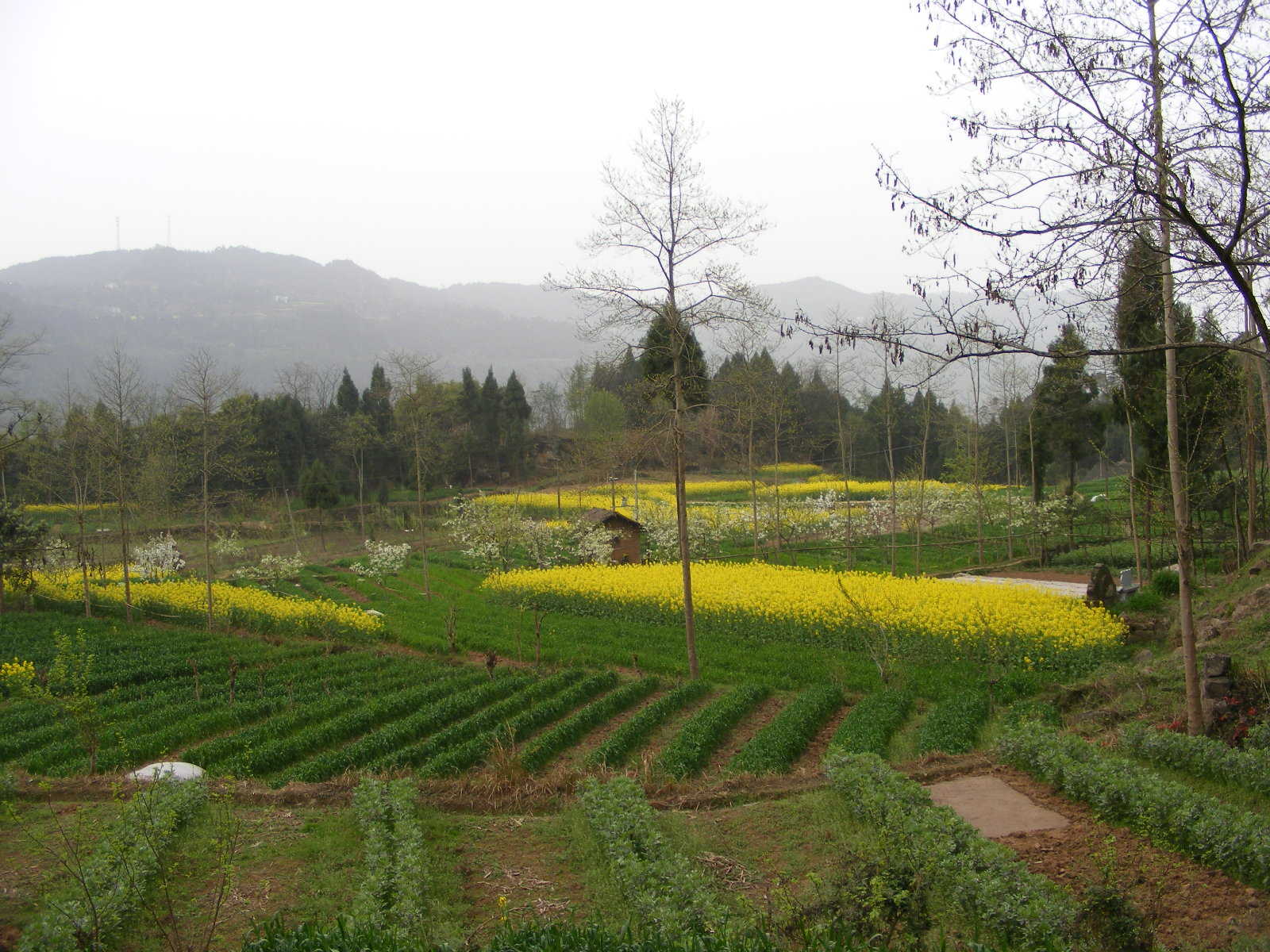 远看,蔚蓝的天空下,那一片片油菜花,密密麻麻,高高低低,像金色的海洋,油菜花那金黄的色彩给我温暖,与绿色菜叶相映,十分的协调,真是一副浓淡相宜的水彩画!