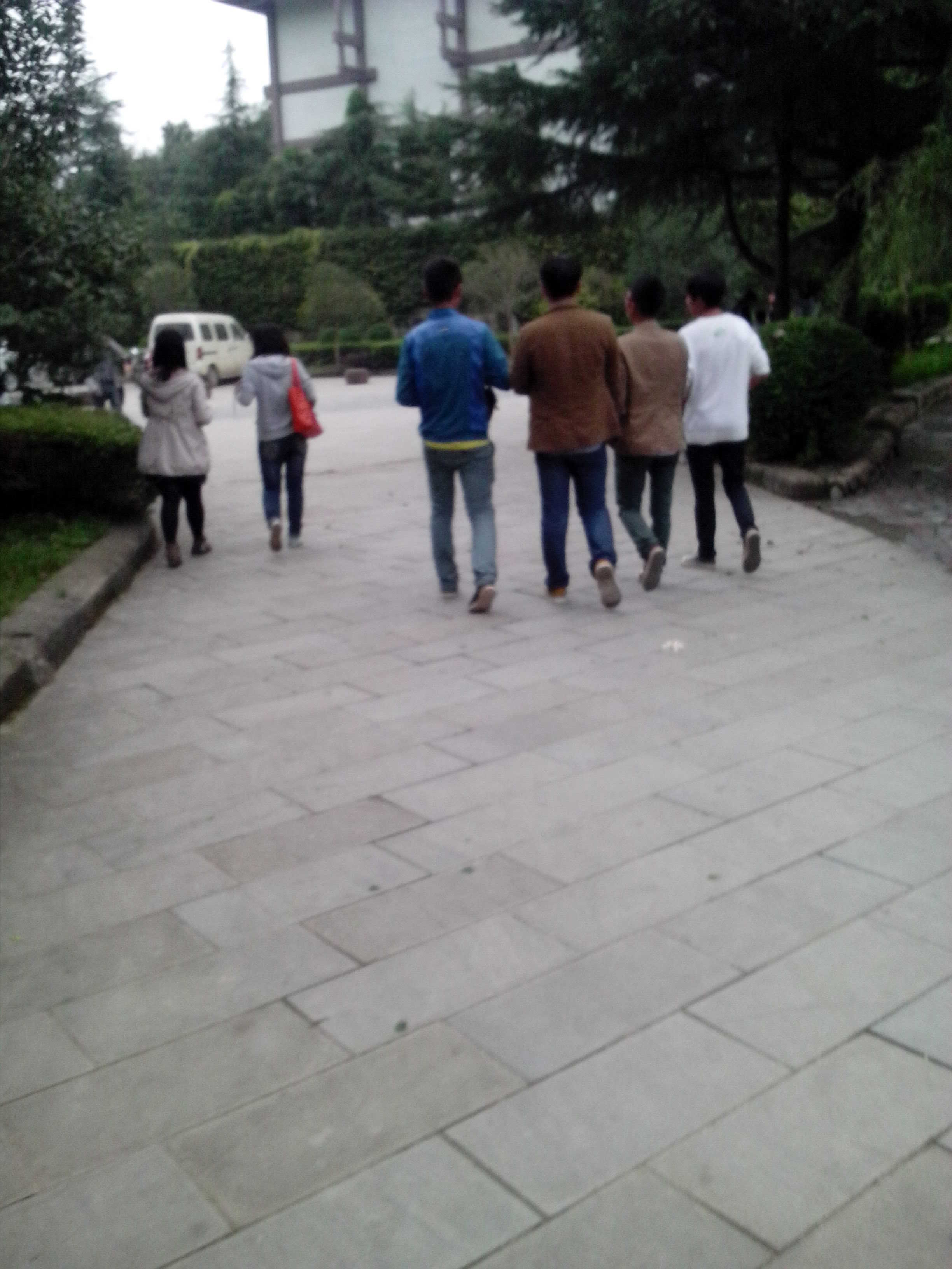 我们去吃饭的时候,他们那些男生就坐在那不动了。而要我们这些女生去添饭。他们一点绅士风度也没有。可我跟他们在一起很开心。