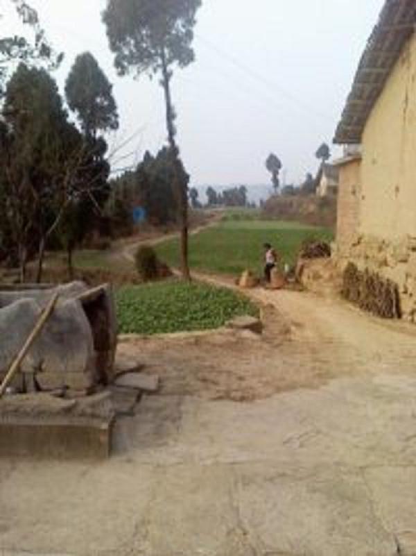 从洗衣槽方向望去,是一片绿油油的菜地,由于有这么好的条件所以大家都喜欢在屋前屋后种一片家菜,想吃什么就种什么,这些都是城里人比不上的。