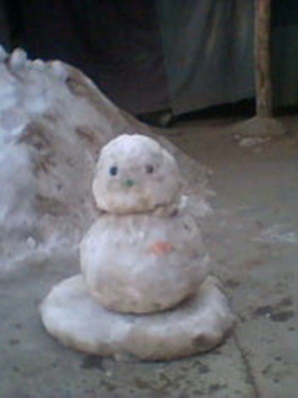 今年放寒假时,下了一场雪。雪后我和妹妹决定堆一个雪人。我们先拿来铁锹、铁铲、泥刀。工具找齐后我们就开始行动。首先从雪堆上取一些雪,然后用手拍平,当作"雪地基"。接着用手团一个雪团,然后放在雪地里滚。等滚到一定大的程度时把它用手拍好,然后放在雪"地基"上。紧接着再做一个小一点的当作头。