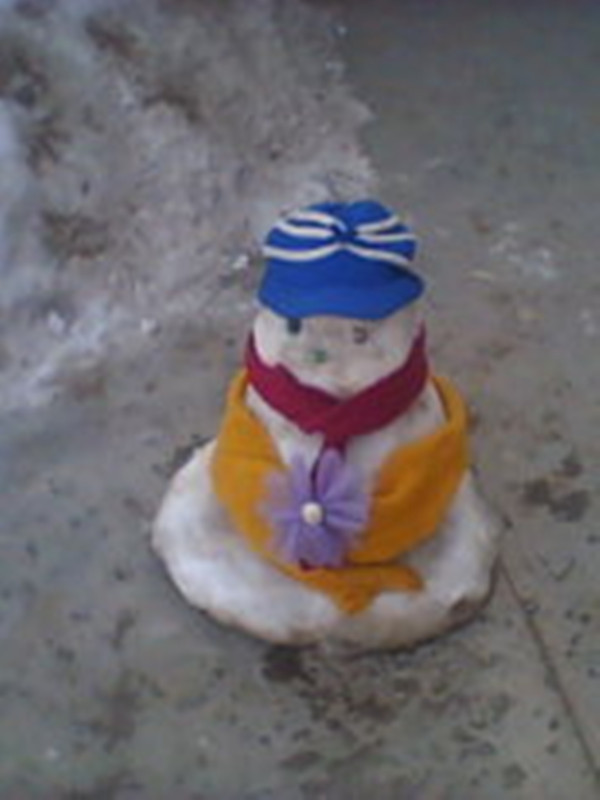 雪人做好后,我和妹妹就开始打扮它。打扮时我用两个玻璃球做它的眼睛。更可笑的是妹妹尽然用自己的帽子和围巾打扮起雪人,还说什么雪人会冷。不一会儿,一个乖巧可爱的雪孩子就诞生了。看着它,我觉得无比自豪。