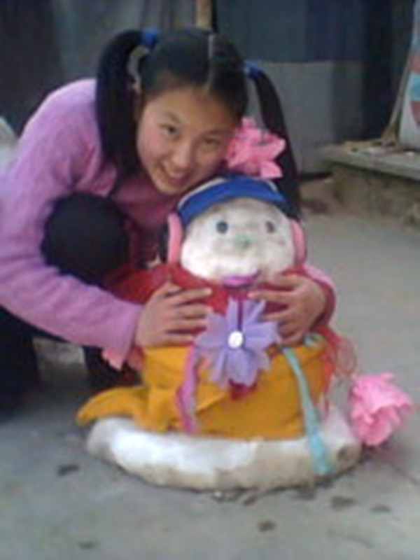 打扮好雪孩子后我和妹妹就开始争先恐后的和雪孩子合影。为了和它合影,我还特意将辫子梳成了两个。照相机的快门"吱"的一声,我和雪孩子的照片就出来了。看着照片我忍不住笑了起来。它使我也变得可爱了不少。