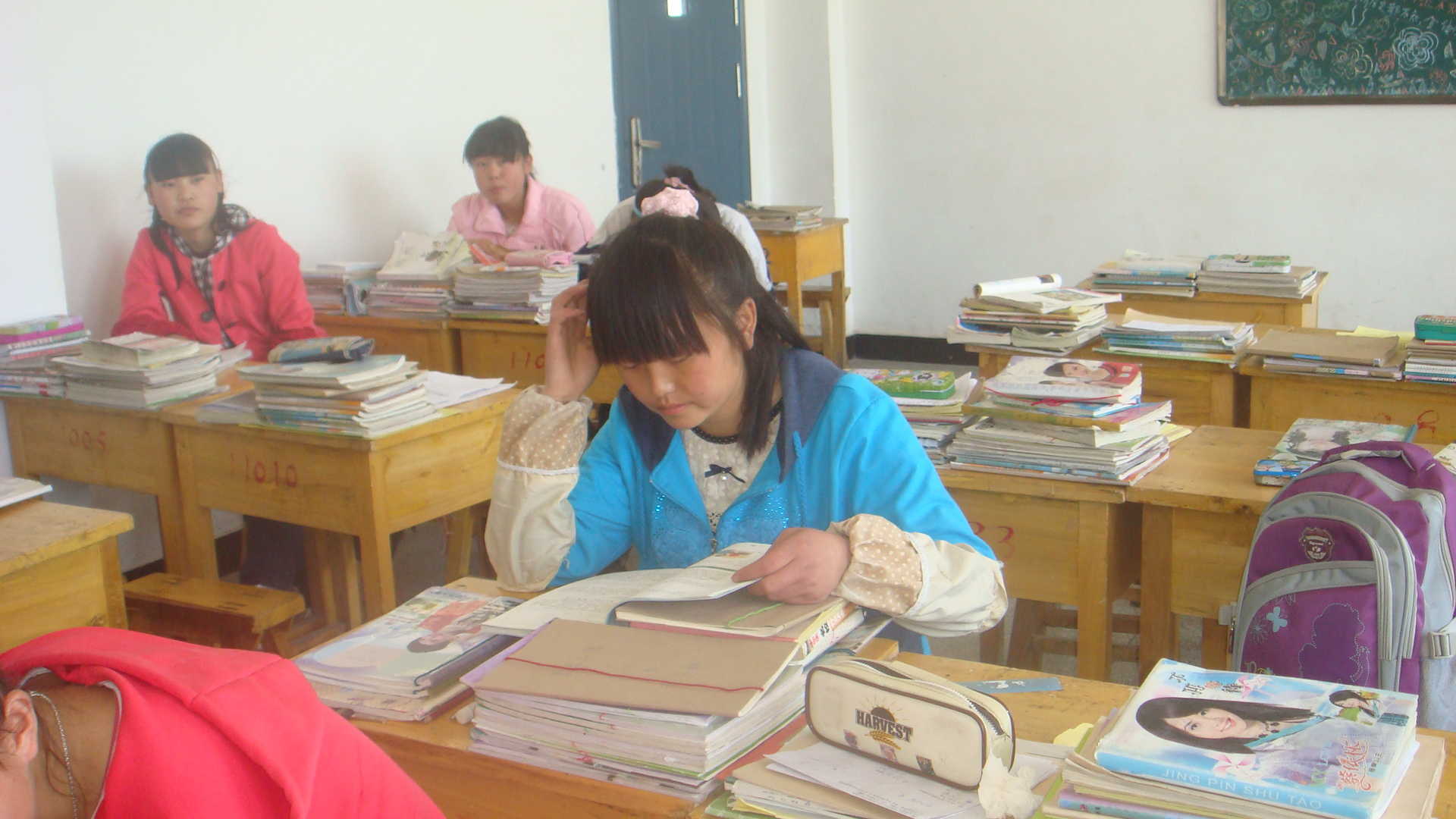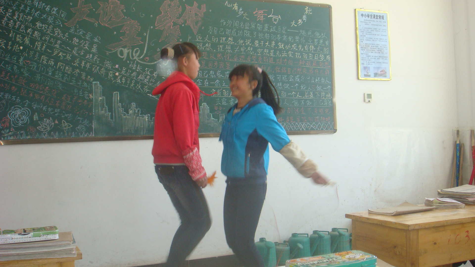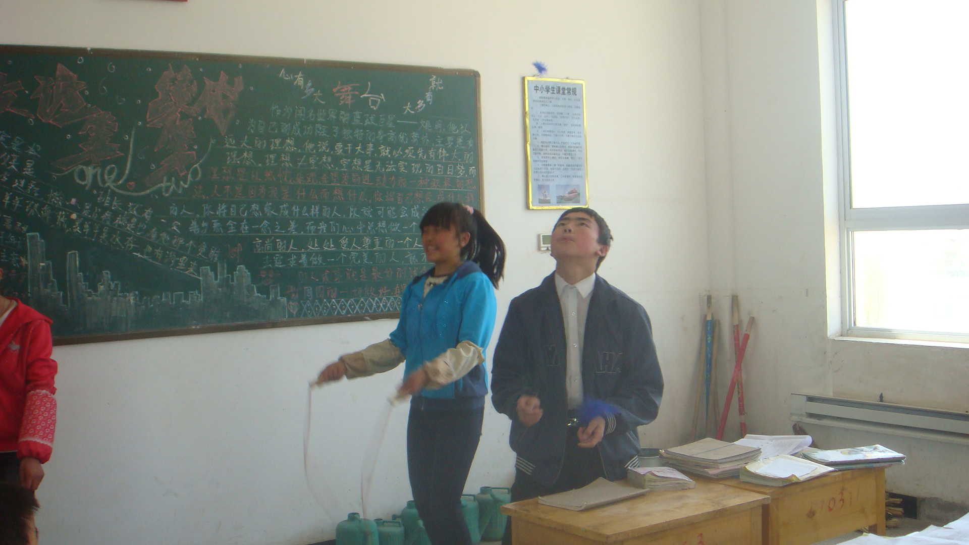 天使并不是时刻都带着笑脸,看!我们的天使正黑着一张小脸在训她的"信徒"呢,从不时传来的训斥声中我明白了,原来是她的"信徒"在copy别人的作业,恰好我们的天使路过此地,被她的慧眼发现了,你想,哪能轻易放过,瞧!从低着头就不难看出"信徒"知错了。