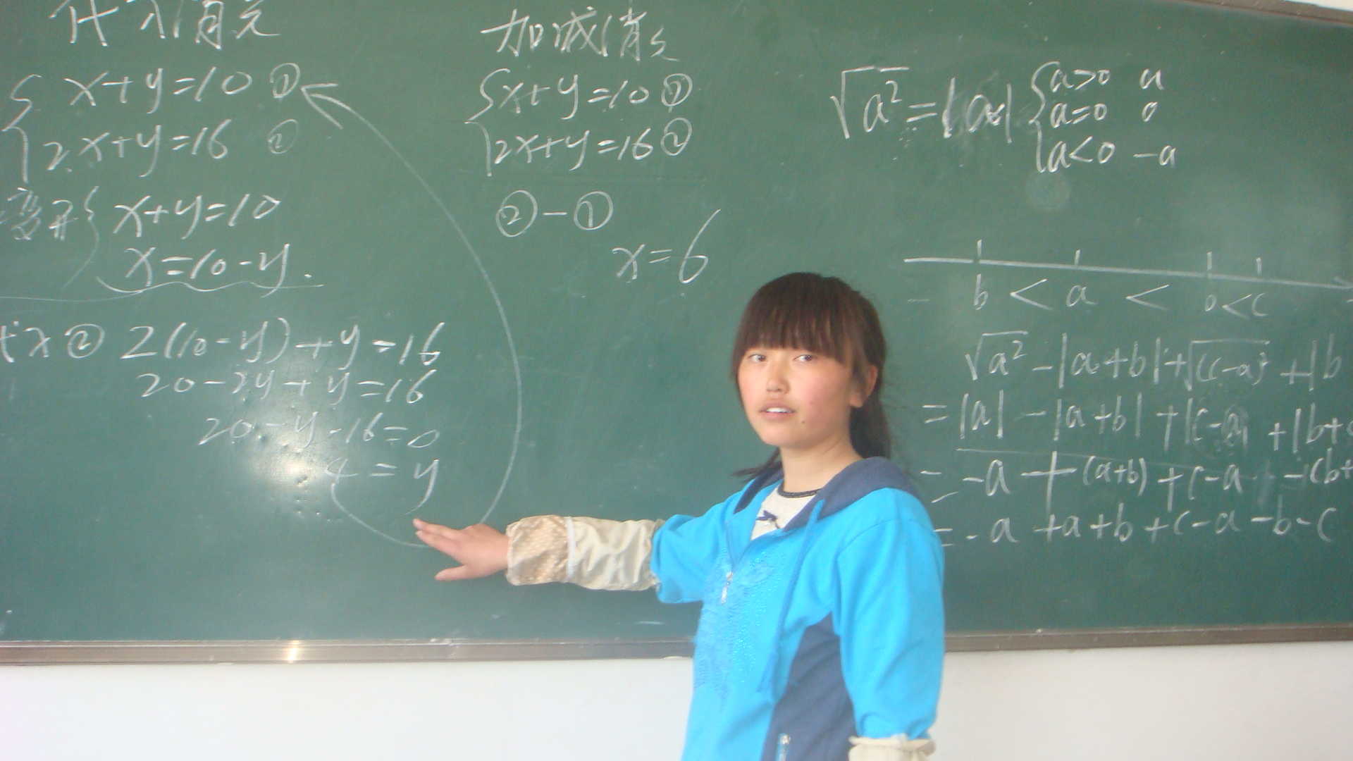 她,有一张天使般的永远带着微笑脸,在这张笑脸上有一双会说话的眼睛,尤其是但她在笑的时候,眼睛眯成了一弯明月,开爱极了,但是,你可千万别被表面现象所迷惑,听听她的自称"双面龟"你也许就会明白,她也是有两面性的,在她一张笑脸上折射出了永远、随时帮助人一面,瞧!并不是所有她正在讲台上一本正经的给哪些学习有困难的学生"解惑"呢,俨然就像一个和蔼的、知识渊博的小老师。